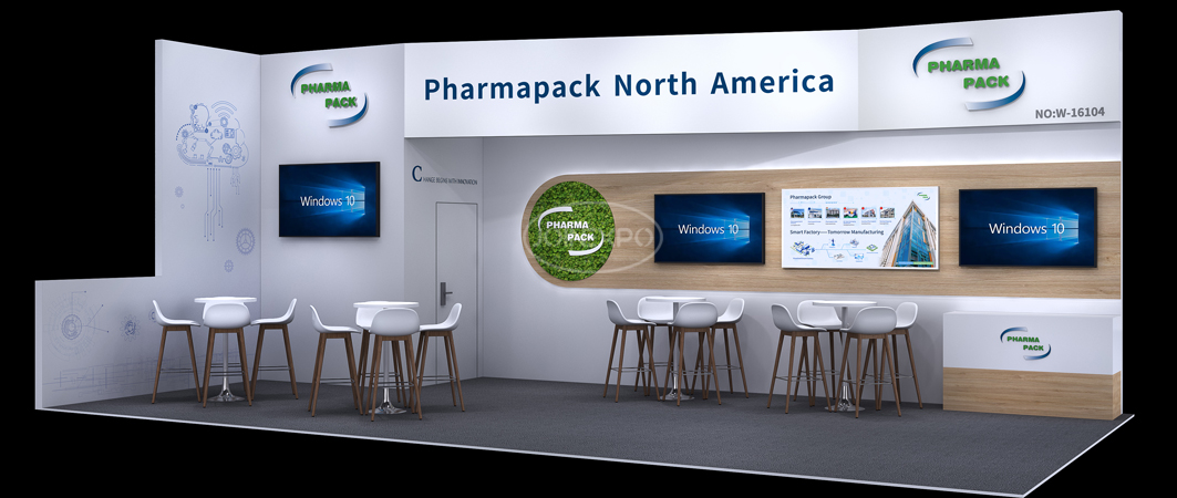 美國芝加哥PACKEXPO展展臺設(shè)計搭建-制藥包裝龍頭琺瑪珈