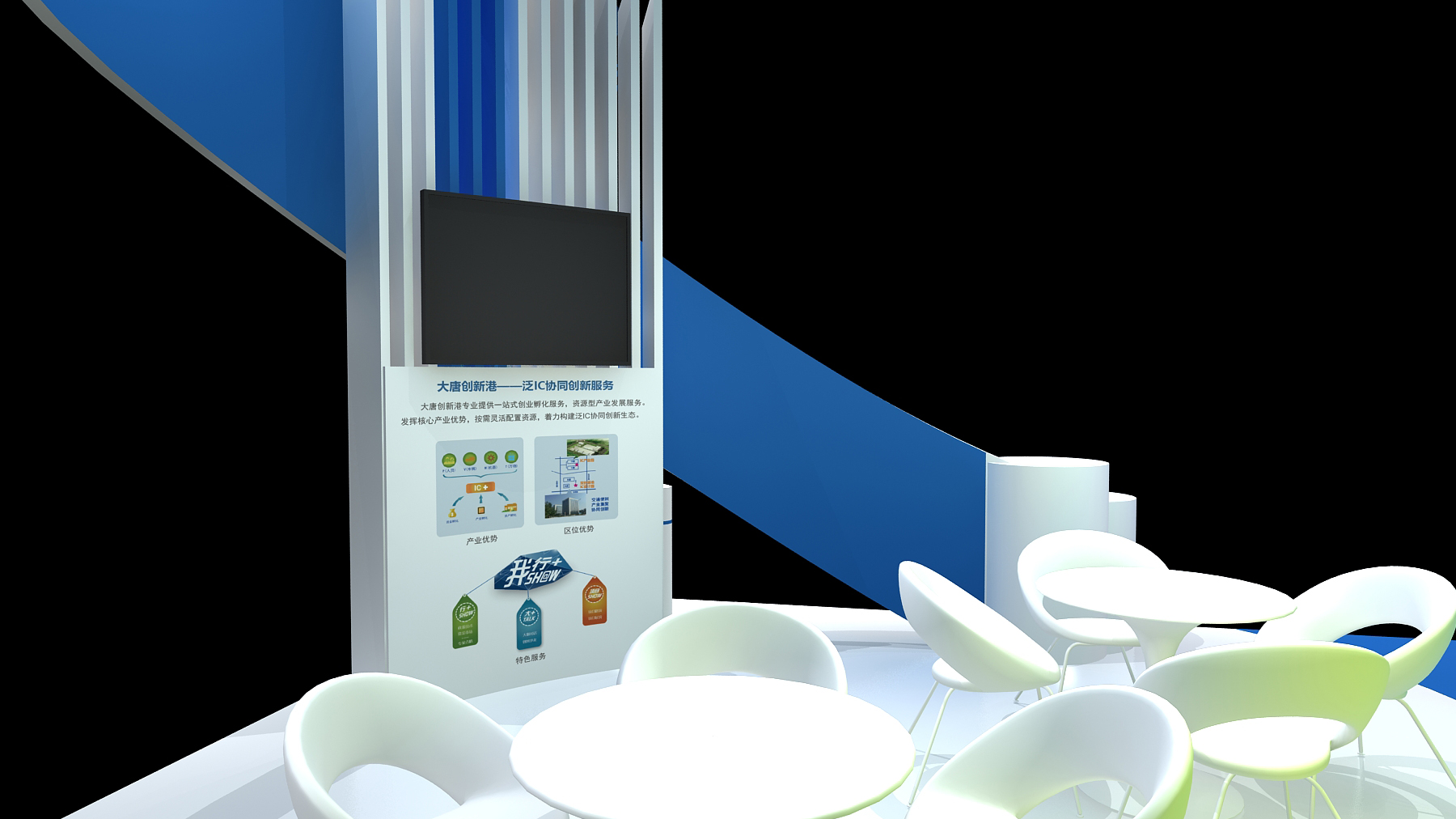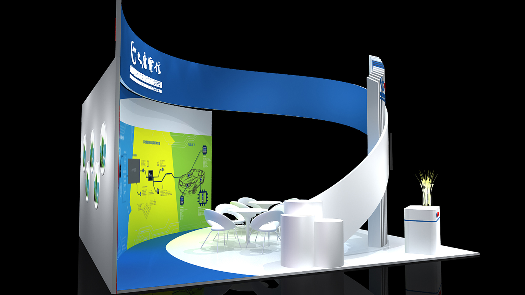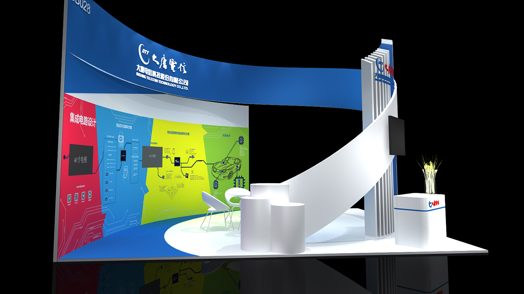 展臺風格:現(xiàn)代簡約,科技感