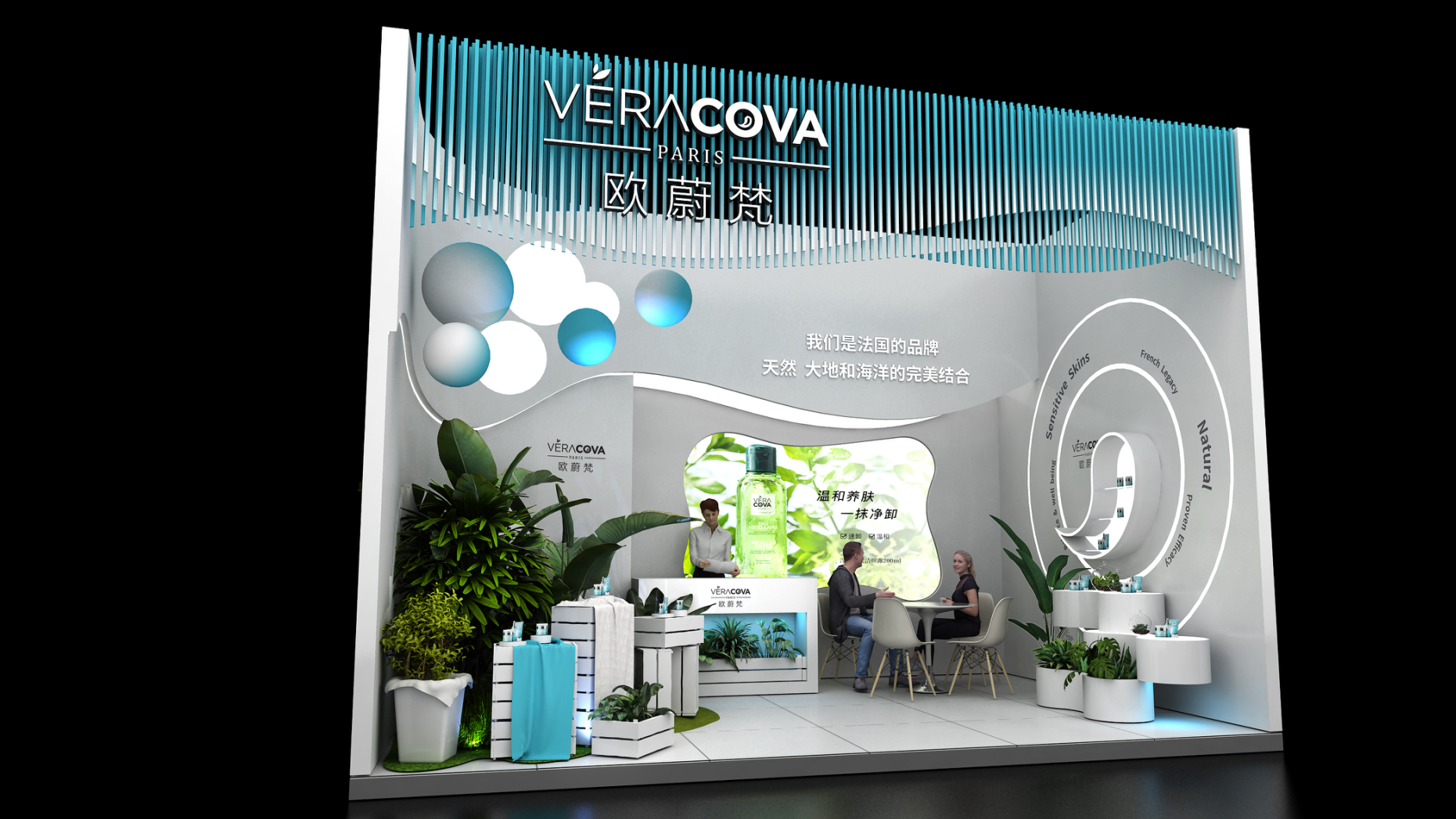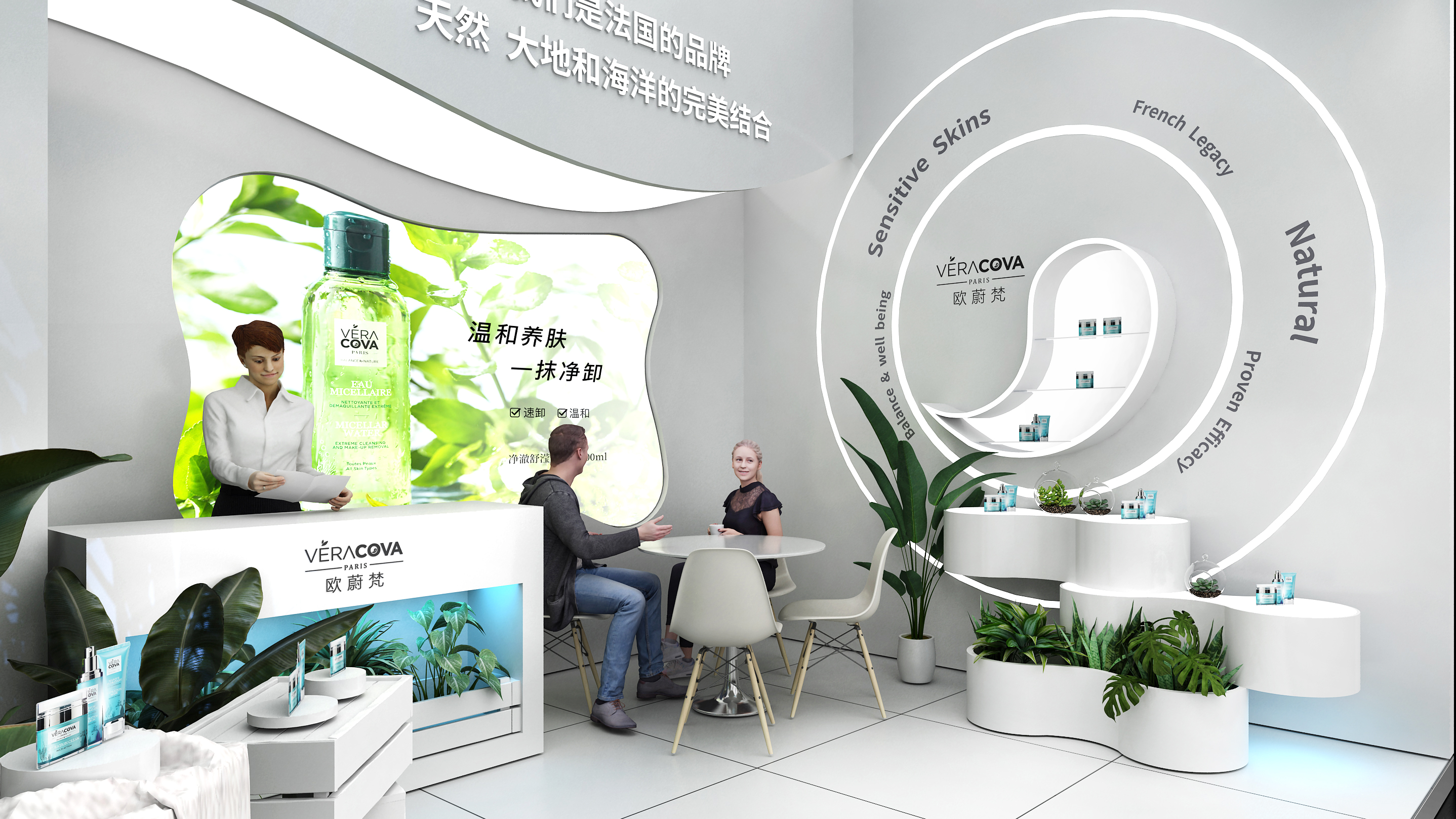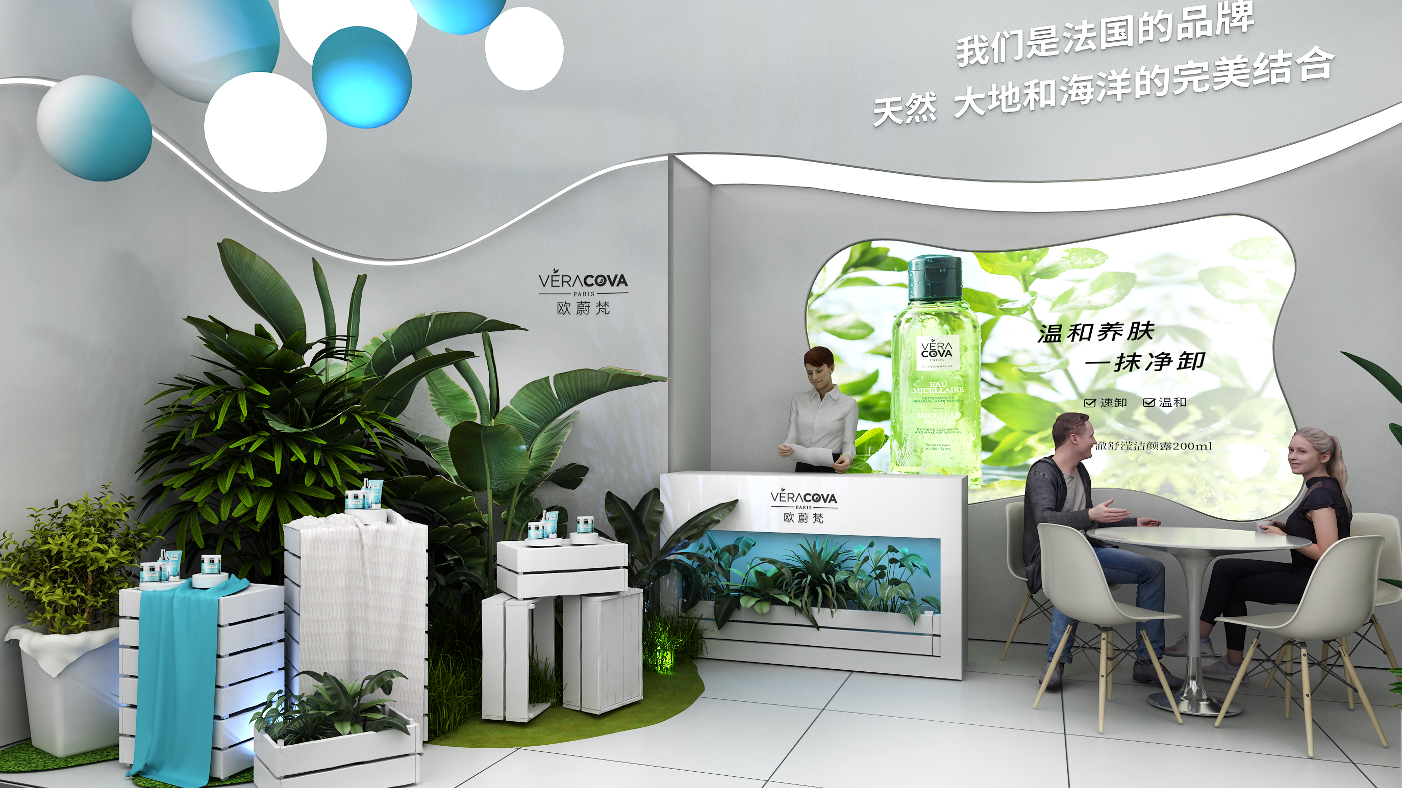 法國品牌歐蔚梵在美博會展臺搭建設(shè)計上展示最新護膚產(chǎn)品