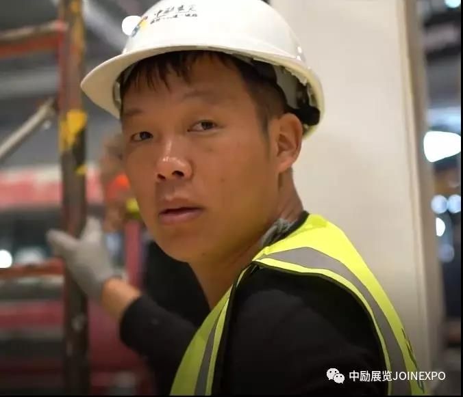 CIIE進博會展臺搭建施工工人