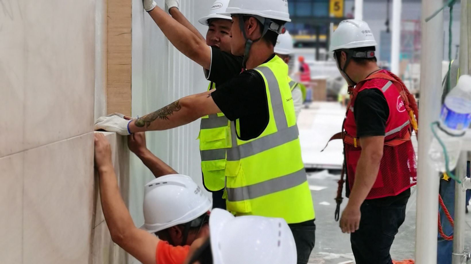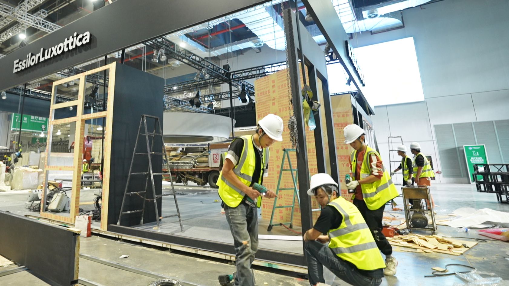 作為中國進口博覽會的重要組成部分,展臺的搭建是整個展覽的關(guān)鍵環(huán)節(jié)。中勵展覽作為專業(yè)的展覽服務(wù)機構(gòu),始終以客戶滿意為核心,秉承著精益求精的工作態(tài)度,為每一位參展商提供高品質(zhì)的展臺搭建服務(wù)。搭建展臺是一項需要細致耐心的工作。一排排展臺架有序地搭建起來,每一位施工人員都全身心投入到工作中。他們戴著安全帽,穿著工裝,手持工具,熟練地操作著,將一塊塊展臺板材拼接在一起。他們井然有序地分工合作,默契配合,確保每一座展臺都能按照設(shè)計圖紙精確搭建。