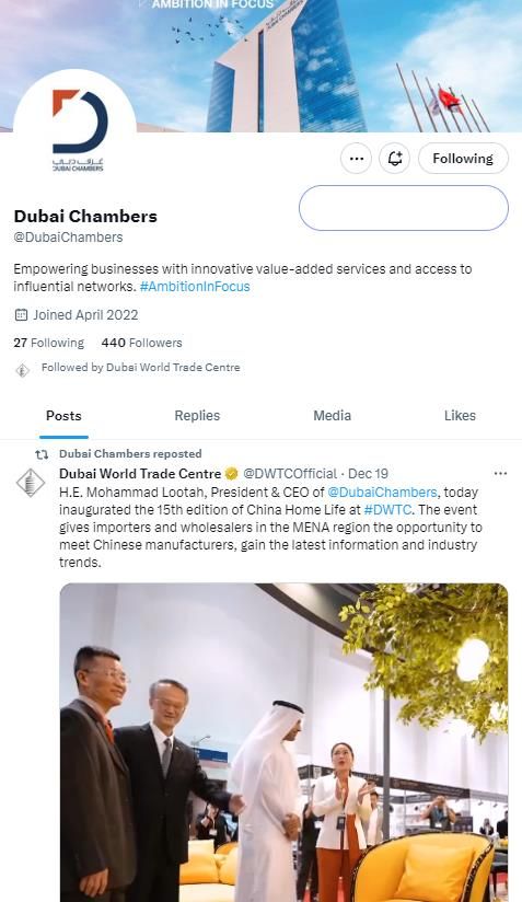 中勵(lì)展覽此次搭建的參展展臺(tái),展位設(shè)計(jì)簡(jiǎn)潔大方,為展品營(yíng)造了完美的展示空間,特別是在展臺(tái)中央“種”下了一顆郁郁蔥蔥的大樹,為展臺(tái)增添了綠色和活力,充分展現(xiàn)了中勵(lì)設(shè)計(jì)對(duì)于創(chuàng)新和高品質(zhì)的追求。H.E. Mohammad Lootah認(rèn)真觀看了展位上的產(chǎn)品,并傾聽了現(xiàn)場(chǎng)工作人員的講解。阿聯(lián)酋商會(huì)官方平臺(tái)@Dubai Chambers也對(duì)此次參觀做了報(bào)道。