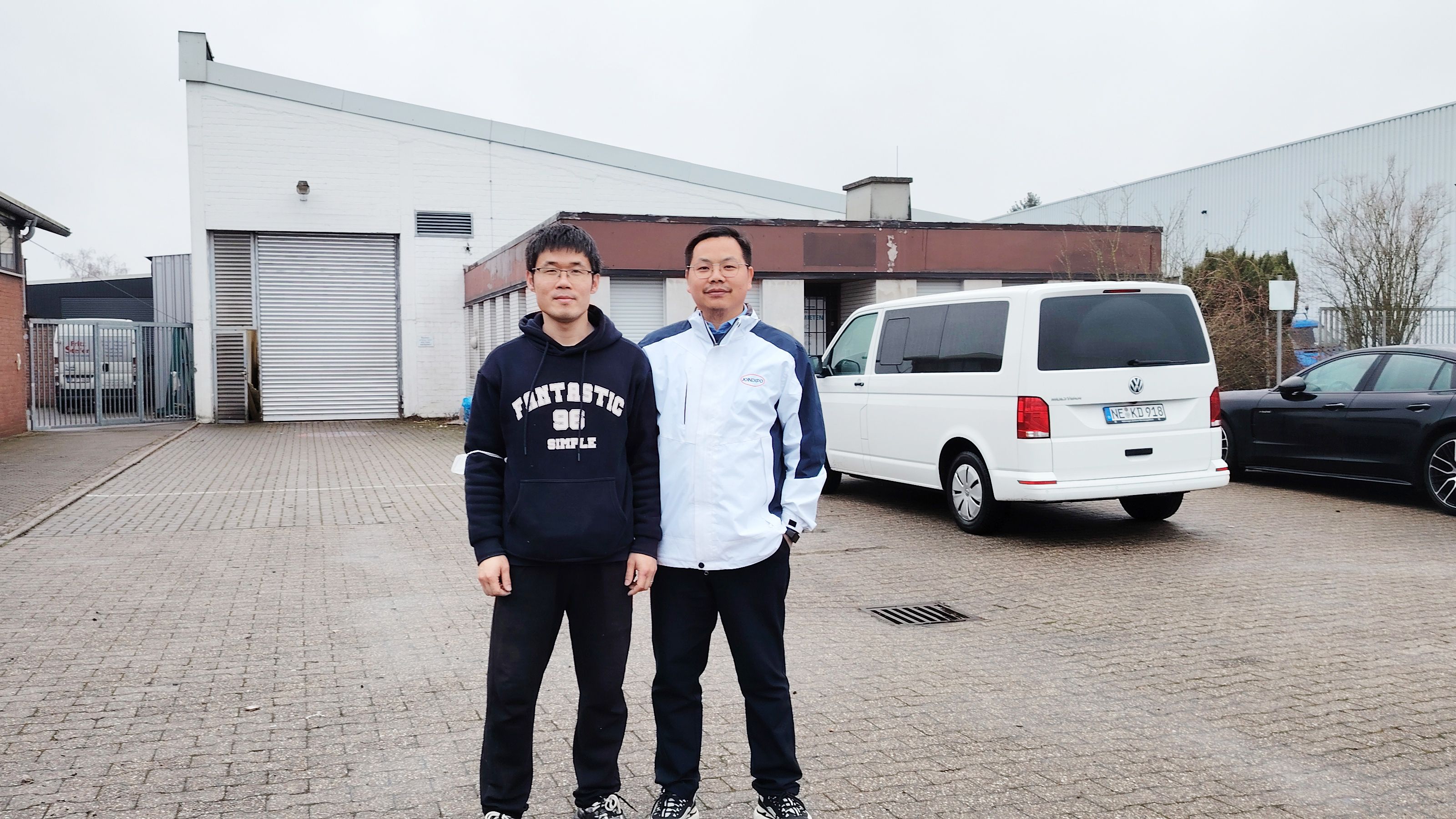 中勵(lì)展覽董事長(zhǎng)David與德國(guó)工廠生產(chǎn)負(fù)責(zé)人JASON在工廠門(mén)口