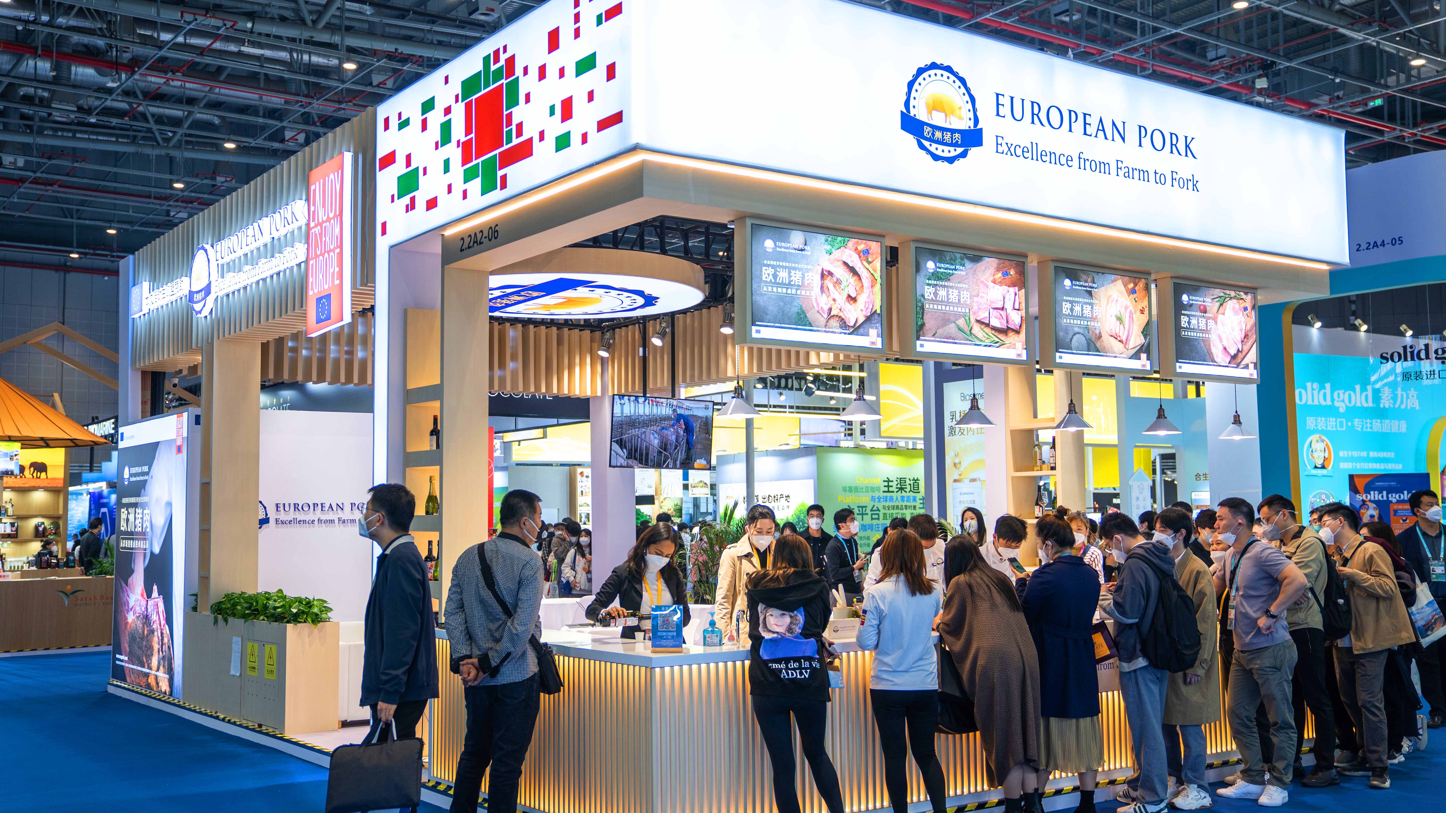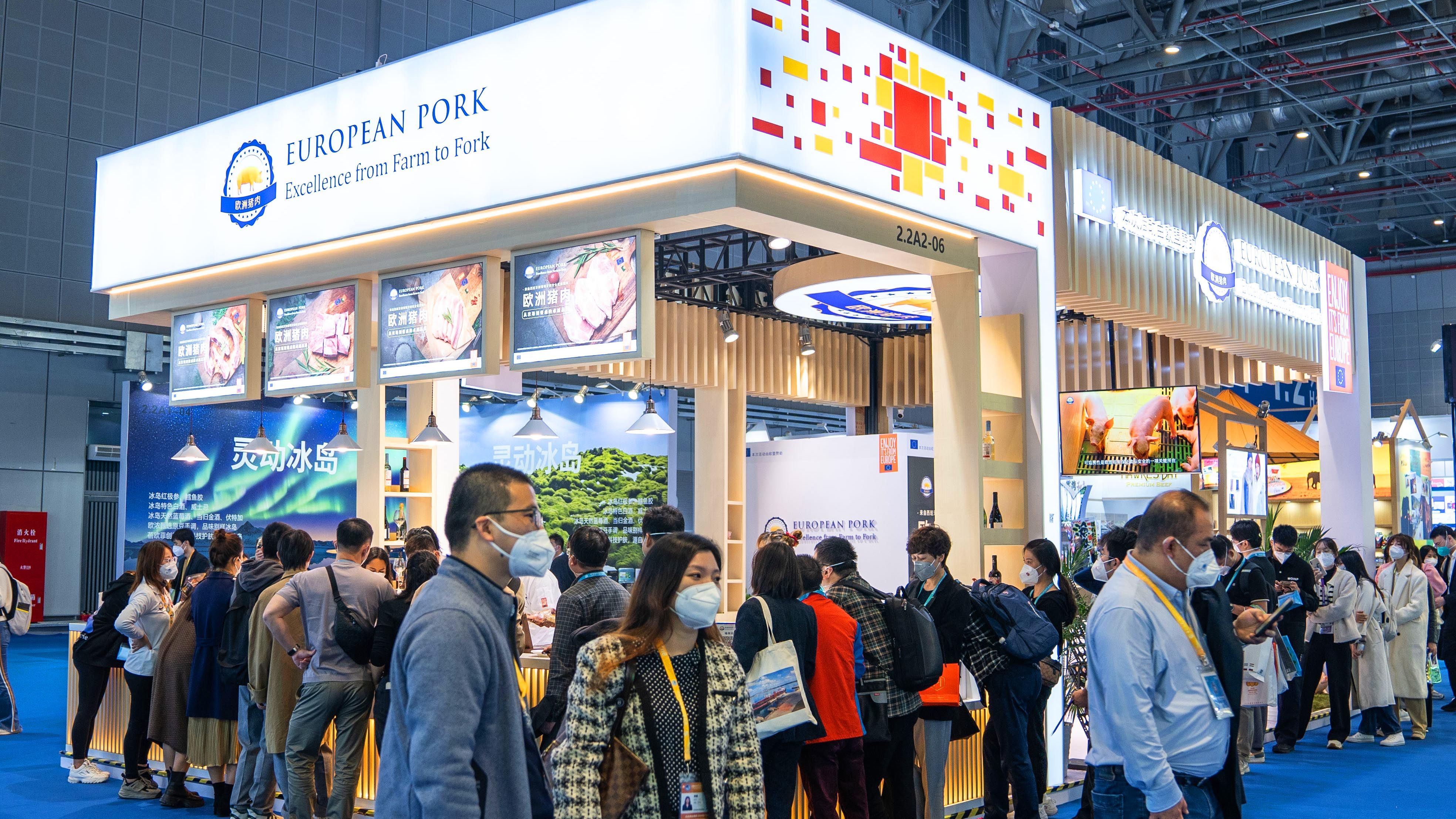 從2020年開始,歐洲豬肉已連續(xù)三年參展。中國龐大的市場(chǎng)強(qiáng)烈吸引著歐盟的養(yǎng)豬企業(yè)。追求品質(zhì)化,成為中國消費(fèi)市場(chǎng)的新趨勢(shì),高品質(zhì)的歐洲豬肉,越來越多地進(jìn)入國人的餐桌。如今歐盟占據(jù)中國進(jìn)口豬肉市場(chǎng)份額的59%,是中國進(jìn)口豬肉最主要的來源地,對(duì)保障中國豬肉市場(chǎng)供應(yīng)發(fā)揮了重要作用。在第五屆中國進(jìn)口博覽會(huì)歐洲豬肉展臺(tái)前,前來咨詢的客商絡(luò)繹不絕,由歐盟贊助的“歐洲豬肉,從農(nóng)場(chǎng)到餐桌的卓越品質(zhì)”推廣活動(dòng)正在推介的,是來自西班牙和葡萄牙的歐洲豬肉。展臺(tái)烹飪區(qū)里,大廚精心烹飪的美味佳肴以及火腿師現(xiàn)切的歐洲火腿,正散發(fā)著誘人的香氣,引得觀展的來賓紛紛駐足品嘗。